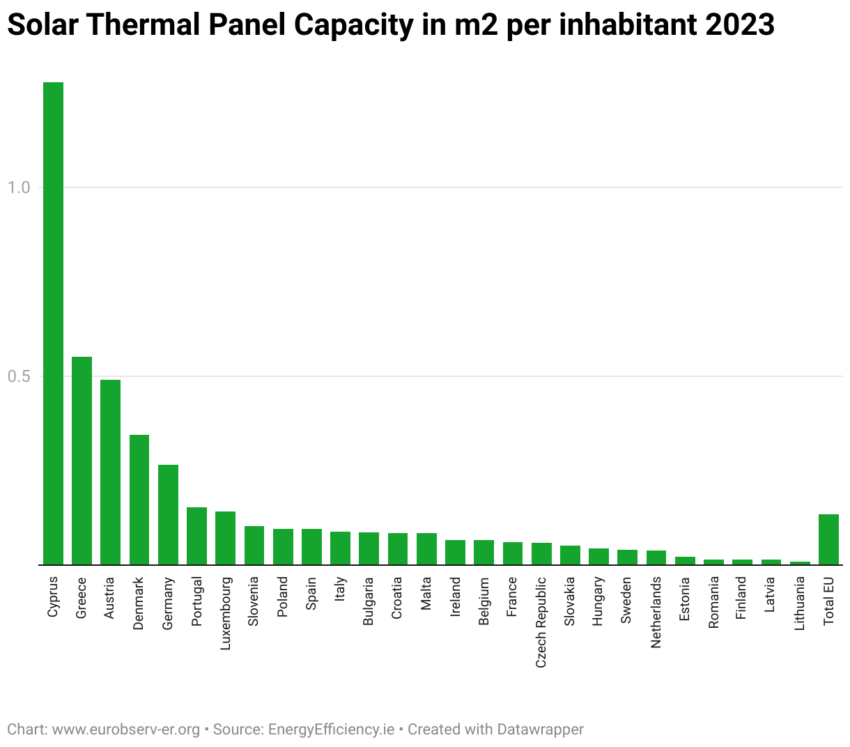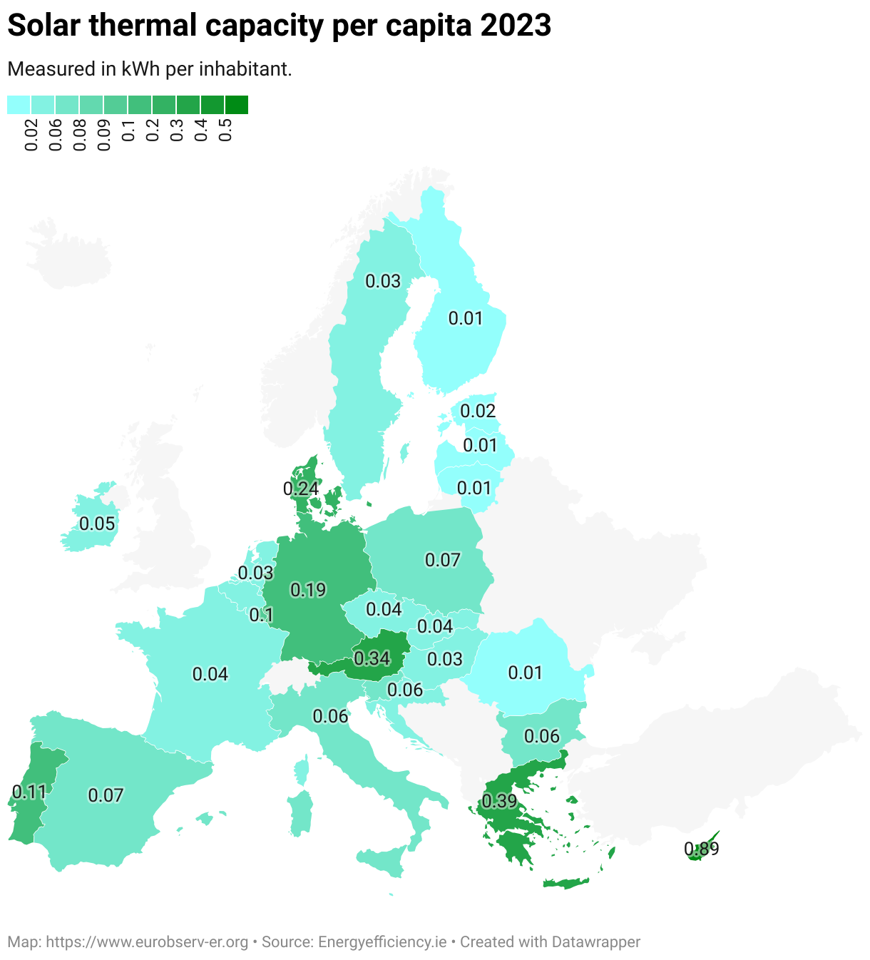Solar Thermal Capacity per Capita in the EU (kwTh)