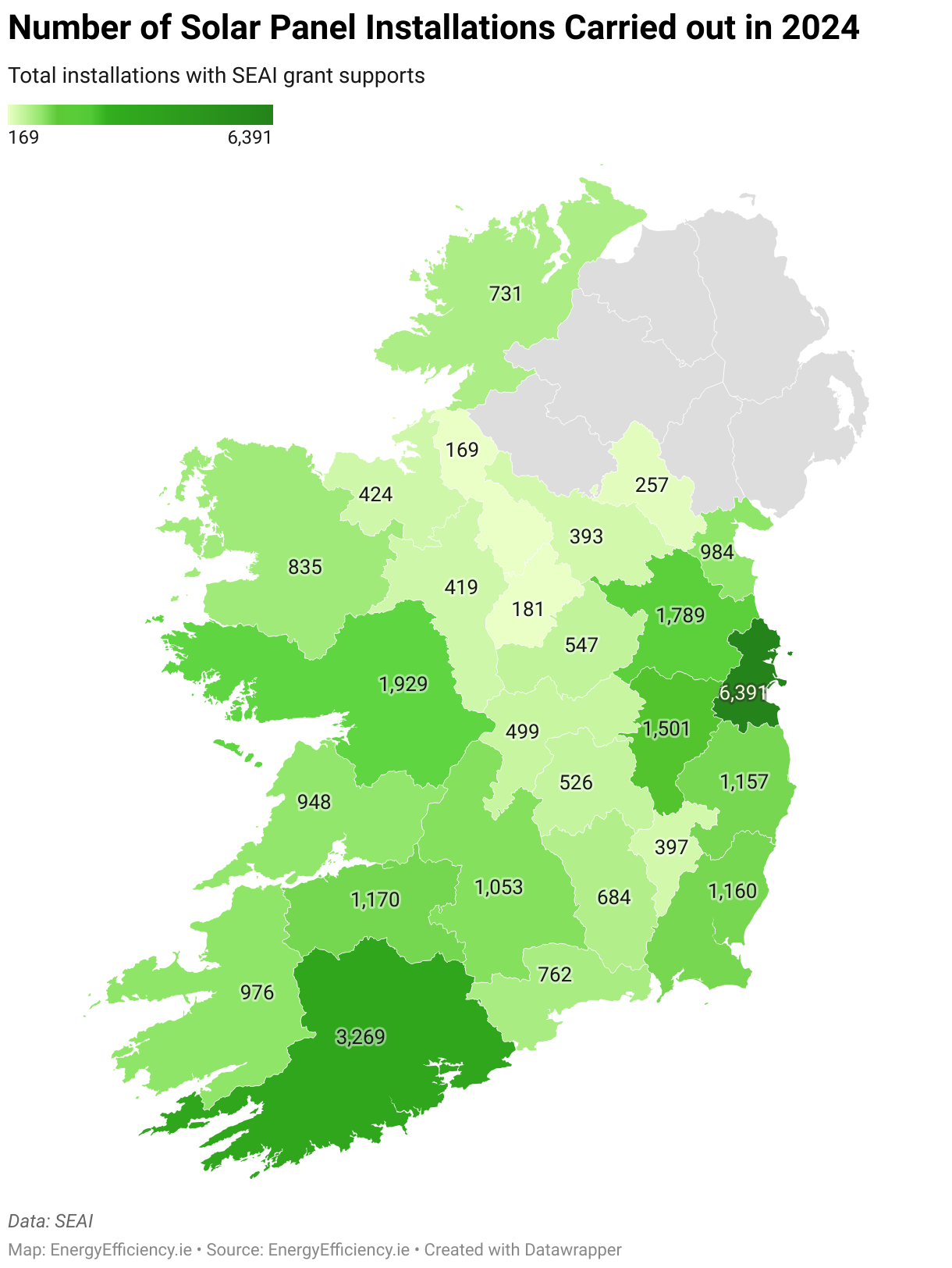 The counties with the most installations in total were Dublin with 6,391, Cork with 3,269 and Galway with 1,929.