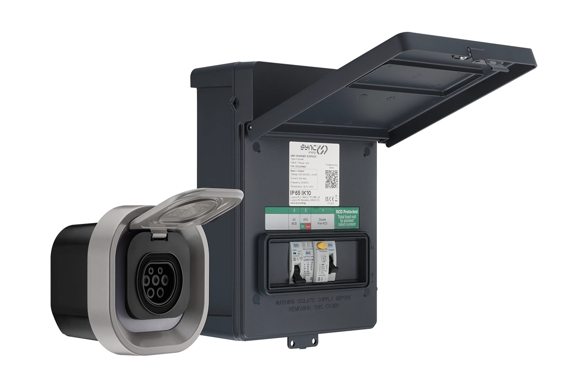 For commercial and fleet EV charging, Sync offers two options: an upgraded version of the wall charger with a 22kW output or the highly modular Pro Charge range.