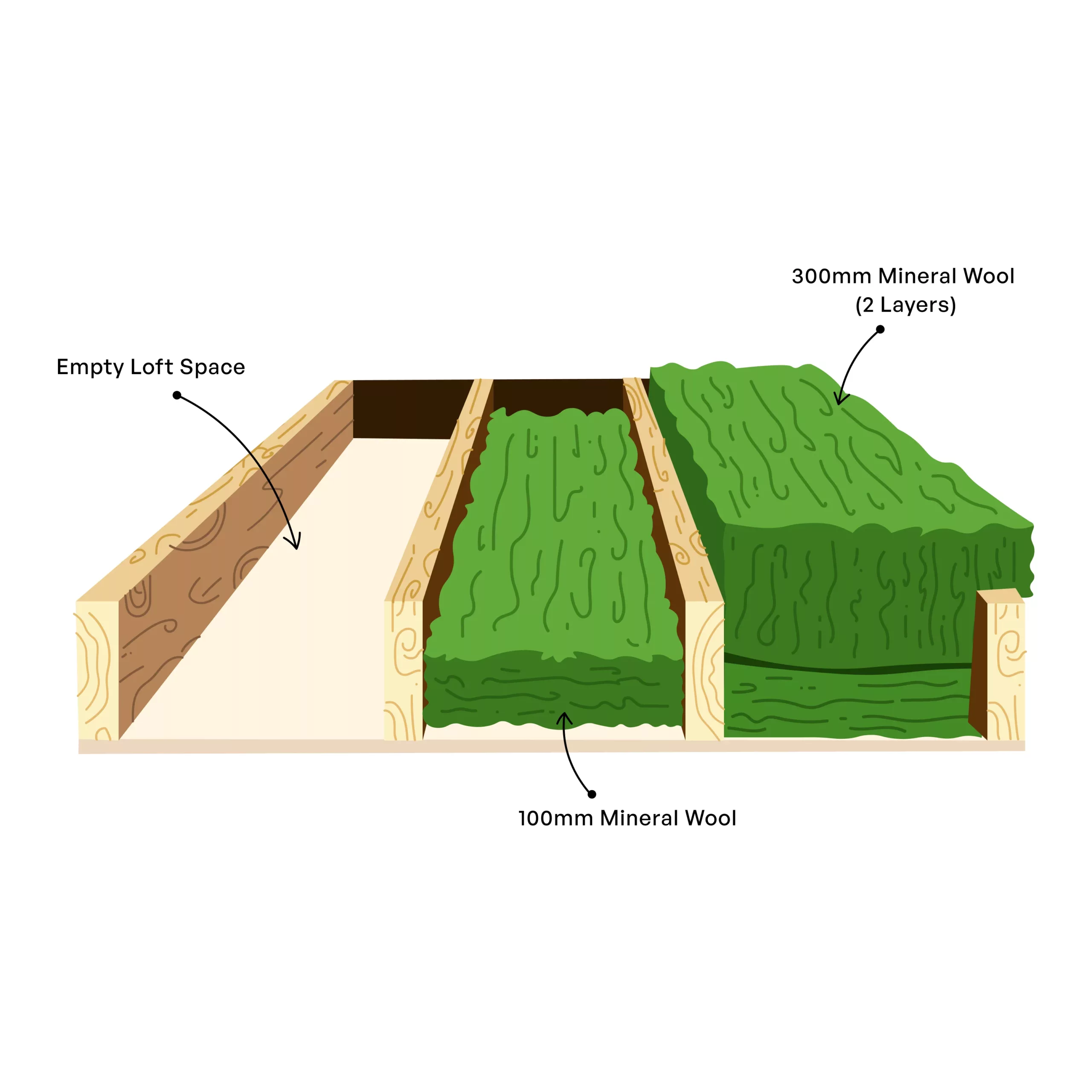 When insulating between loft joists, you should aim to install a total of 300mm of insulation to get the best performance. This could be 200mm on top of what is already present, or 300mm of mineral wool.