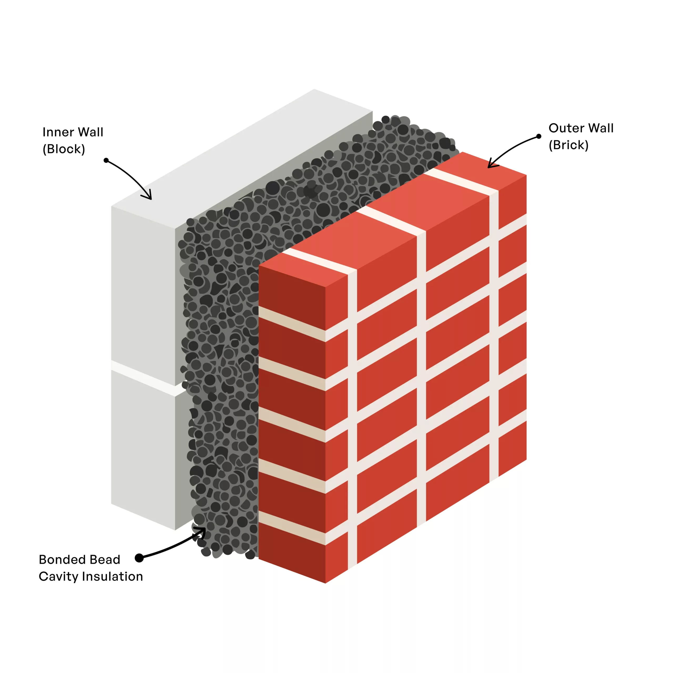 Bonded Bead insulation consists of small polystyrene beads, which are mixed with a liquid glue before being pumped into the cavity space. The beads will be pushed to fill the entire cavity area before the glue dries, causing the entire mass to harden.
