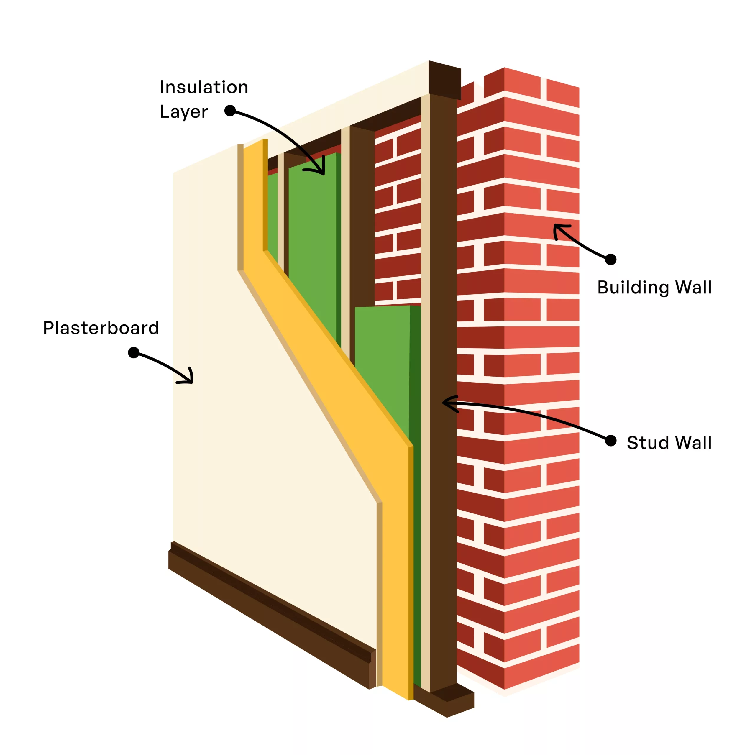 What Are They: A stud wall is a freestanding wooden frame with a plasterboard backing. This can be used to divide a room or to create a framework for insulation in front of an existing masonry wall when you want to improve fire or acoustic insulation.
